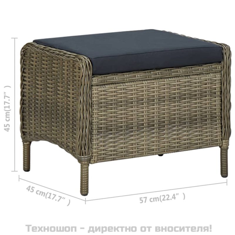 Градински комплект с възглавници, 3 части, кафяв полиратан