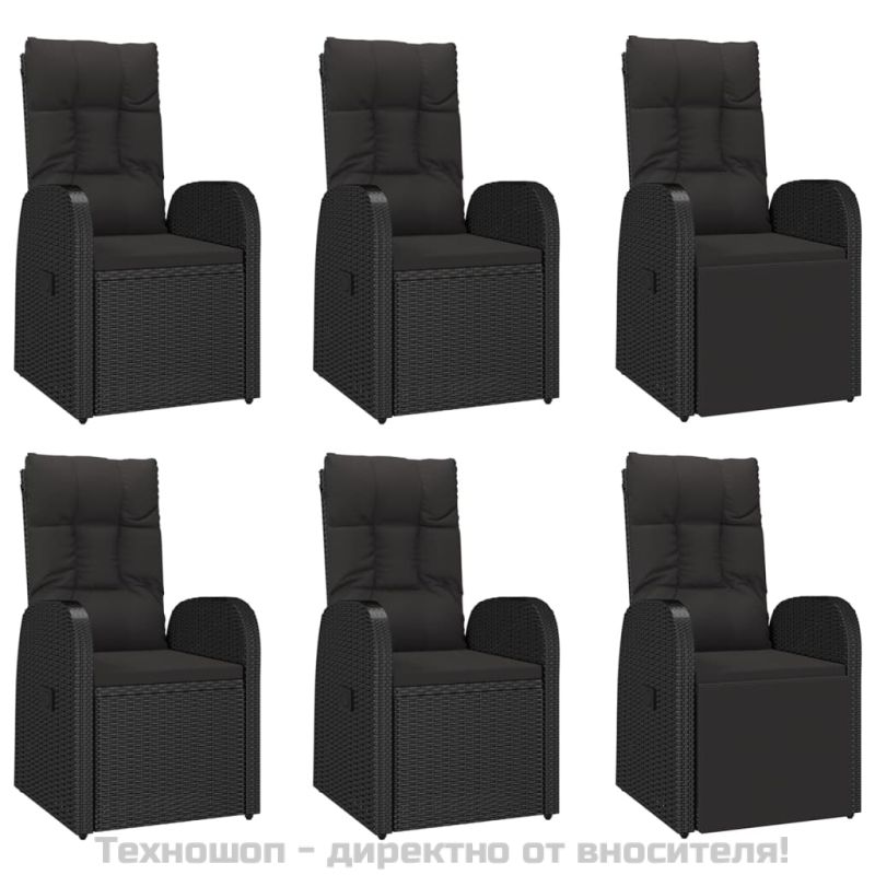 Градински трапезен комплект 7 части възглавници черен полиратан