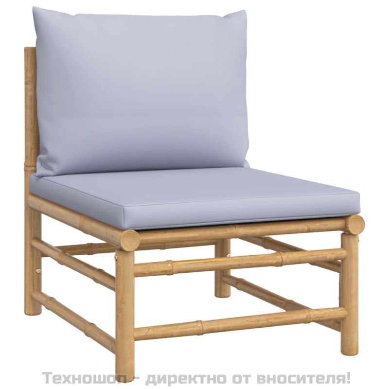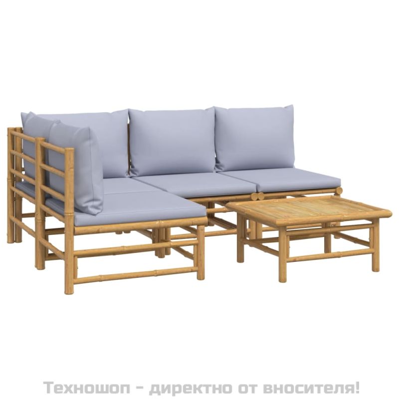 Градински лаундж комплект 5 части светлосиви възглавници бамбук