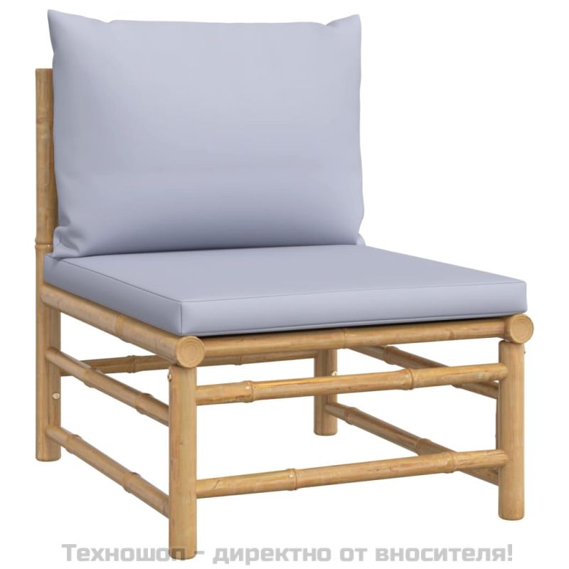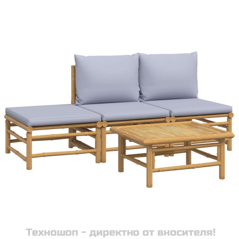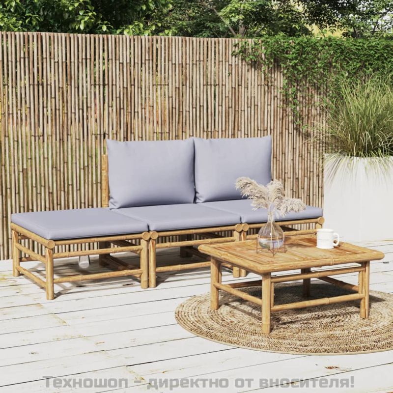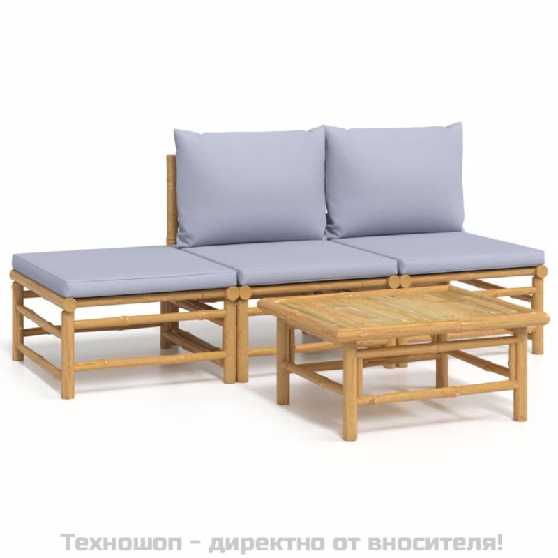 Градински лаундж комплект 4 части светлосиви възглавници бамбук