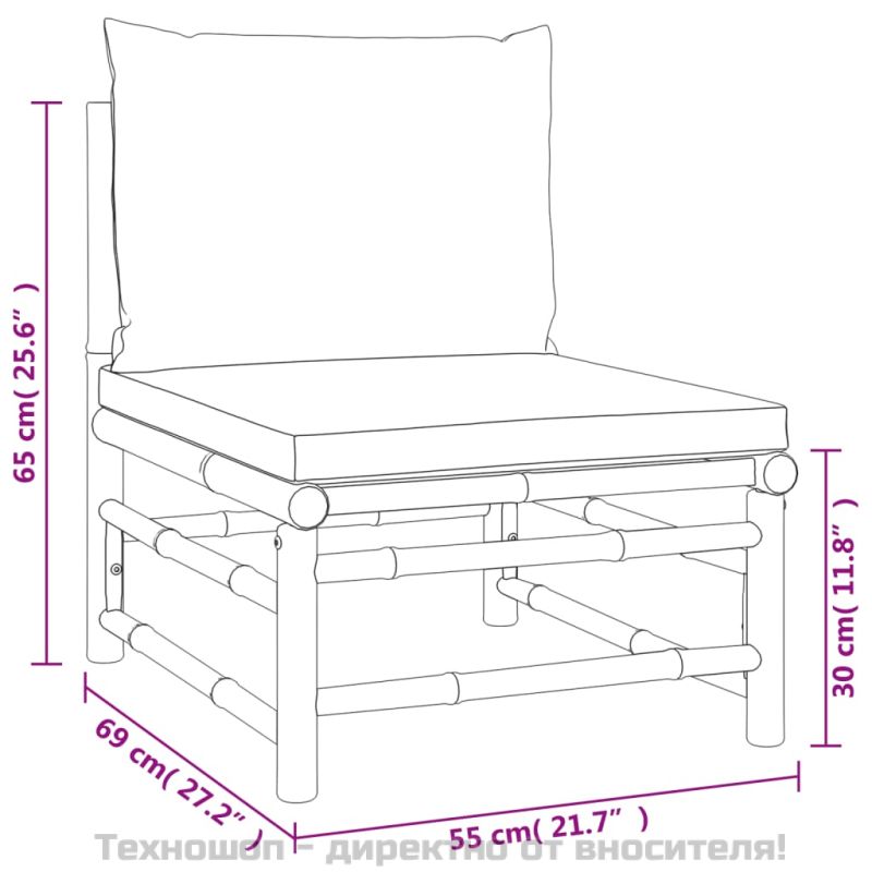 Насладете се на чаша кафе или чай при приятно време във вашето външно пространство с този елегантен бамбуков градински лаундж комплект! Издръжлив материал: Бамбукът е известен със своята гъвкавост и твърдост. Мебелите от бамбук са добър вариант, когато искате здрави външни мебели, изработени от естествени материали.Удобно седене: Облегалката и подлакътника добавят повече комфорт при седене на градинския комплект мека мебел. Освен това меките възглавници на седалката и облегалката осигуряват комфорт по време на седене.Практична маса: Здравата масичка е идеална за поставяне на ястия, напитки и други декоративни елементи.Модулен дизайн: Комплектът за отдих е гъвкав и лесен за преместване, така че можете да го комбинирате с други модулни сегменти в уеб магазина, за да създадете свои собствени лични конфигурации за отдих на открито! Забележка:За да сте сигурни, че вашите външни мебели ще останат красиви, ви препоръчваме да ги защитите с водоустойчиво покривало.Добре е да се знае:За да бъде сглобяването възможно най-лесно, всеки продукт се доставя с ръководство.