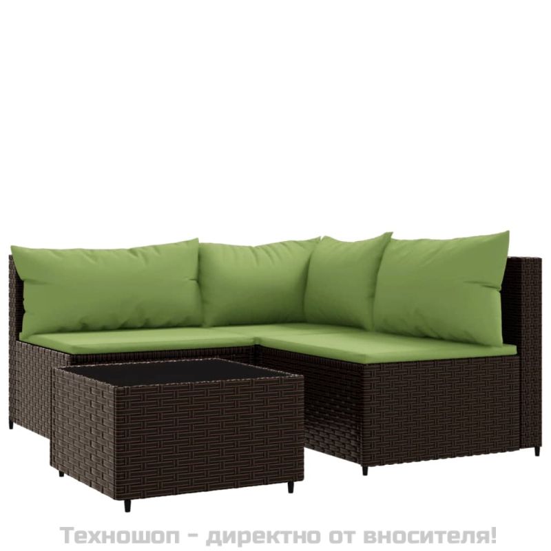 - Купете Градински комплект с възглавници, 4 части, кафяв, полиратан или друг продукт от нашата промоционална секция за да получите 3% отстъпка.