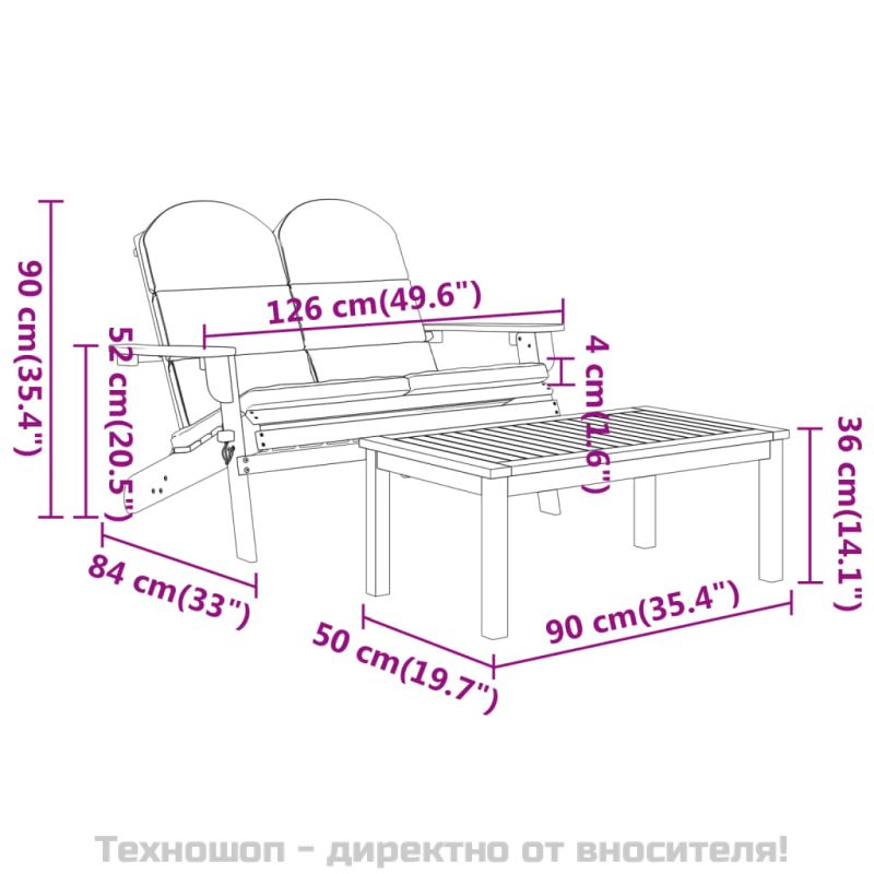 - Купете Адирондак градински лаундж комплект, 4 части, акация масив или друг продукт от нашата промоционална секция за да получите 3% отстъпка.