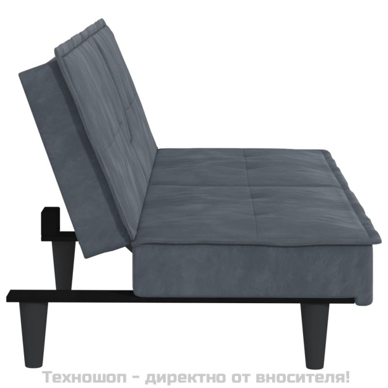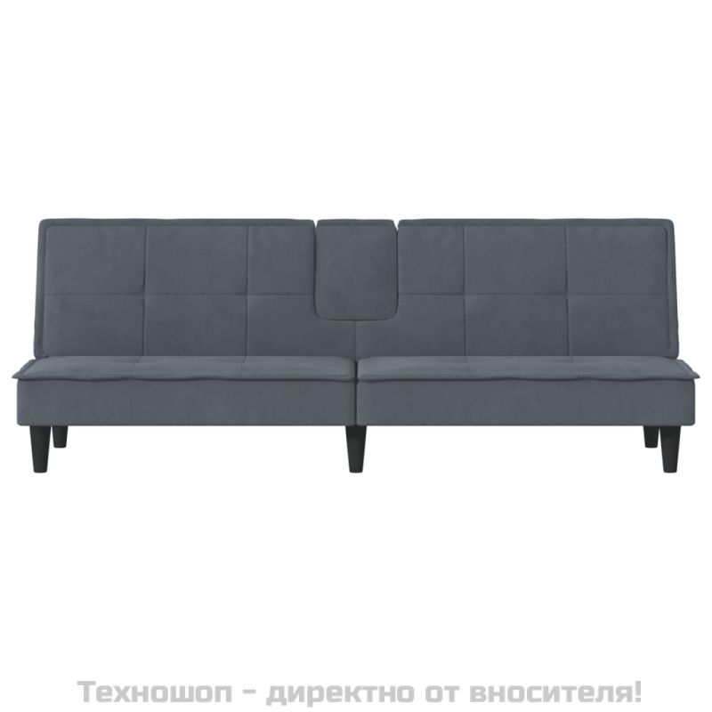 Разтегателен диван с поставки за чаши, тъмносив, кадифе