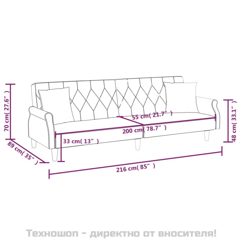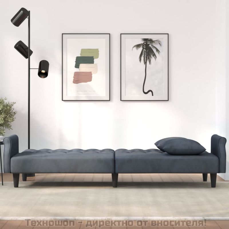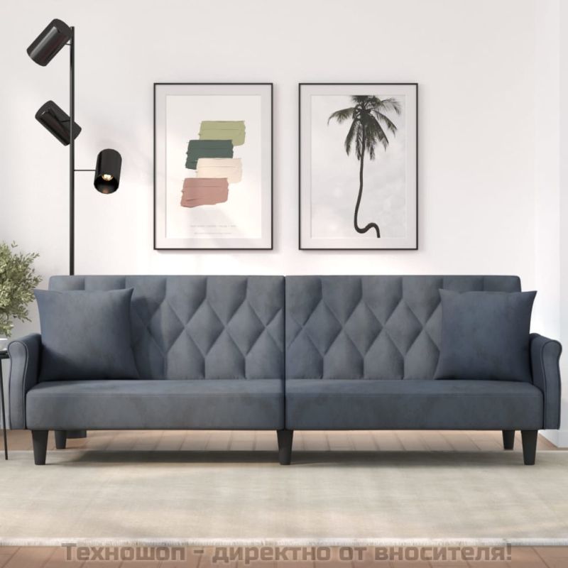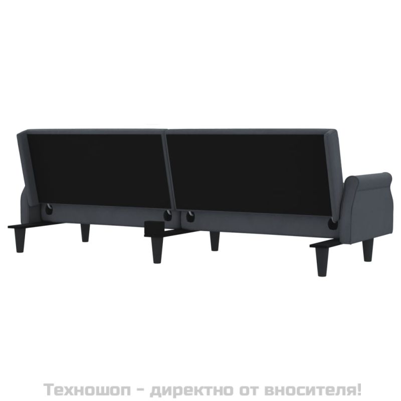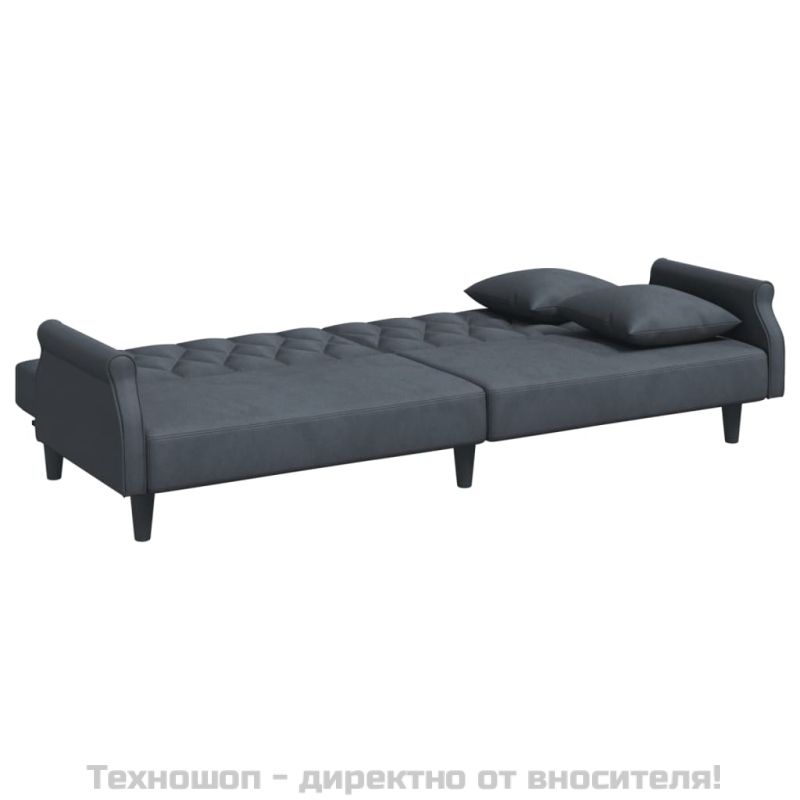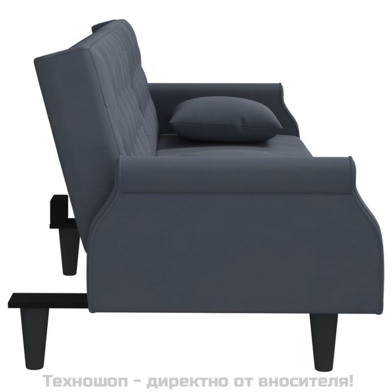 Разтегателно канапе с подлакътници, тъмносиво, кадифе