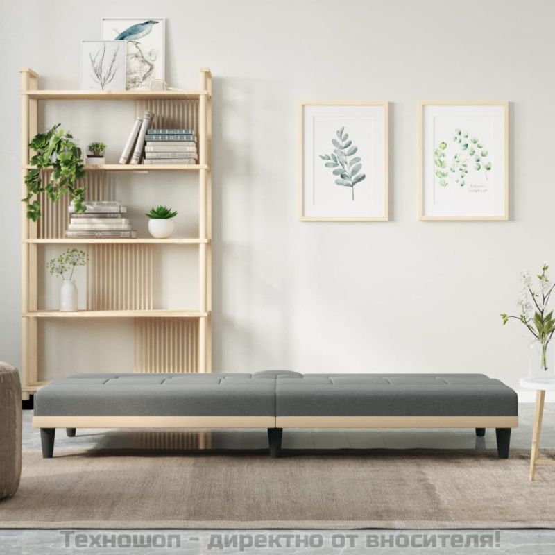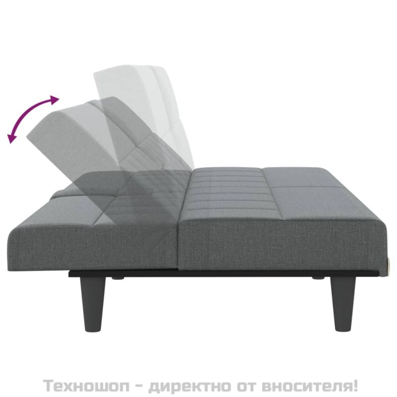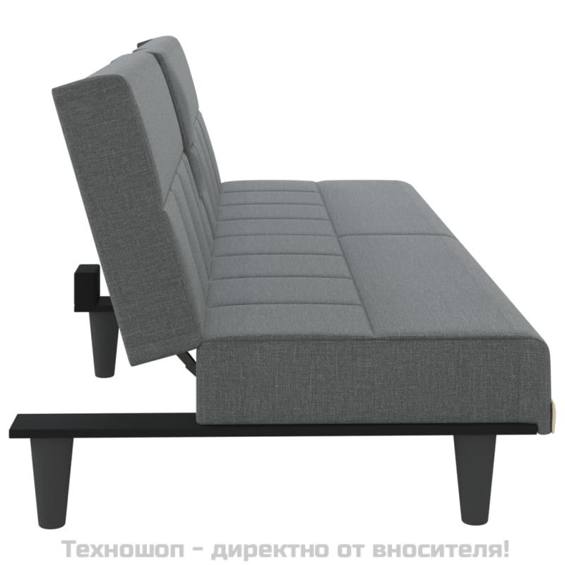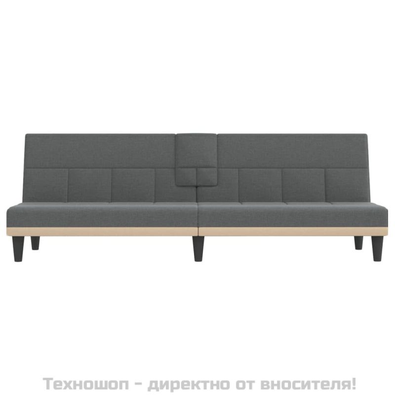Разтегателен диван с поставки за чаши, тъмносив, плат