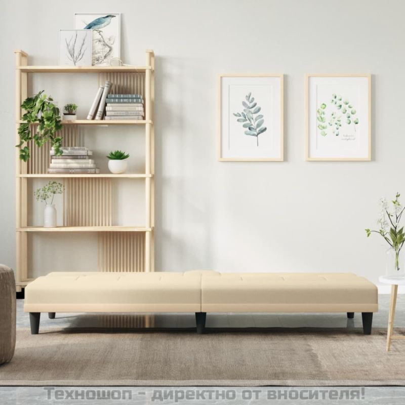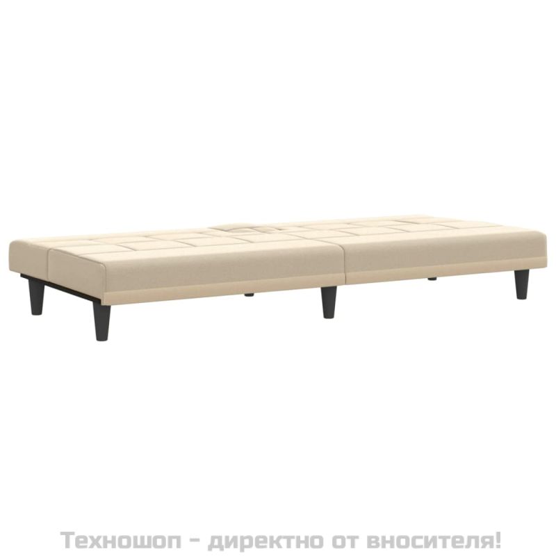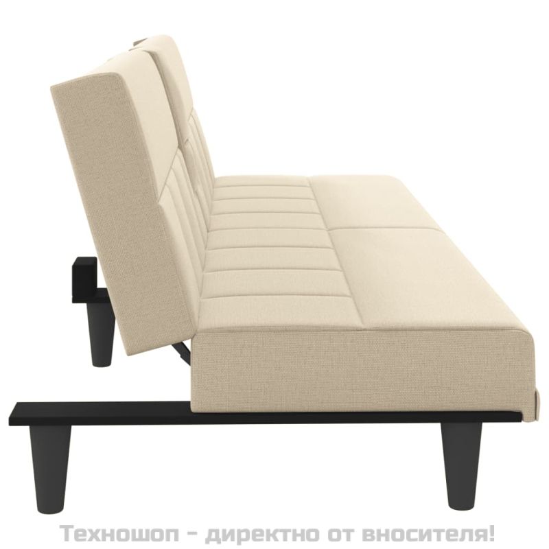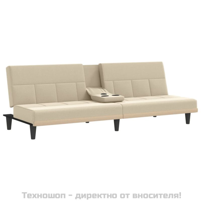 Разтегателен диван с поставки за чаши, кремав, плат