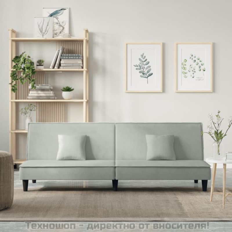 Разтегателен диван, светлосиво, кадифе