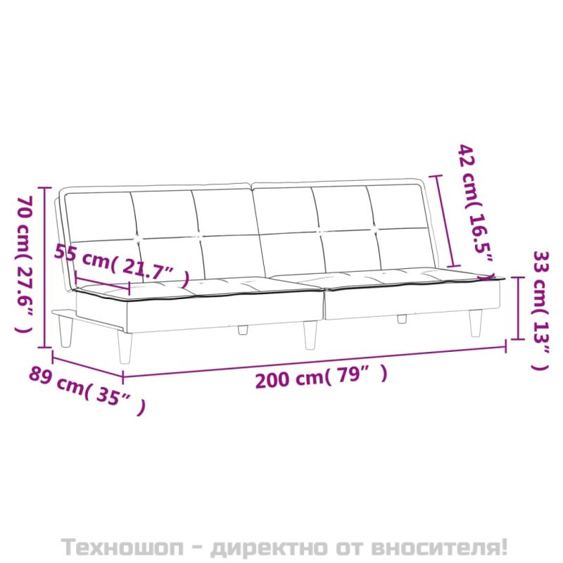 Това разтегателно канапе е перфектно за гости с преспиване, като същевременно осигурява удобно място за сядане през деня. Издържлив материал: Тъканта се отличава със семпъл и изчистен вид и е дишаща и издръжлива. Регулируема облегалка: Можете да натиснете двете отделни облегалки на канапето частично или напълно надолу, за да създадете идеално място за дрямка или двойно легло. Удобна седалка: Разтегателният диван е много удобен с дебело подплатени седалки и облегалки. Здрава и стабилна рамка: Рамката от шперплат на дивана осигурява здравина и стабилност. Добре е да се знае:За да бъде сглобяването възможно най-лесно, всеки продукт се доставя с ръководство.
