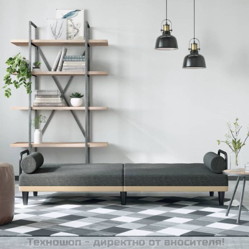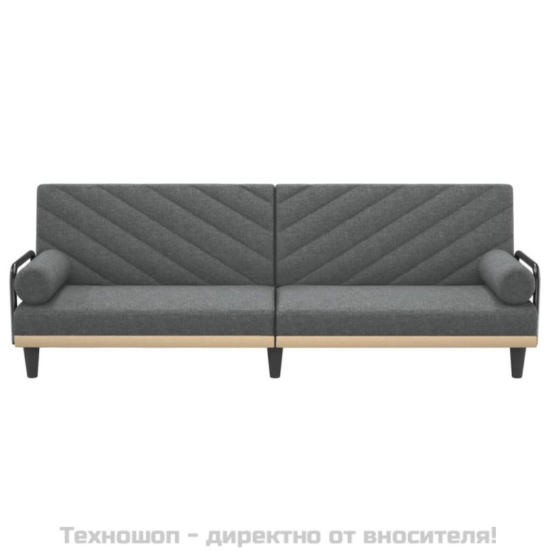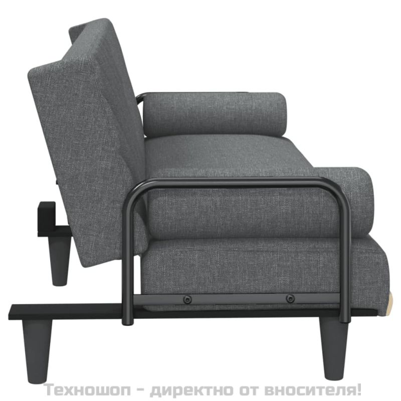 Разтегателно канапе с подлакътници, тъмносиво, плат