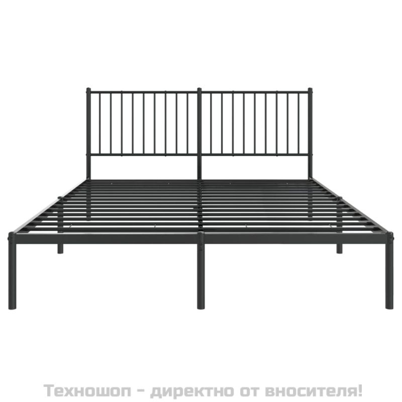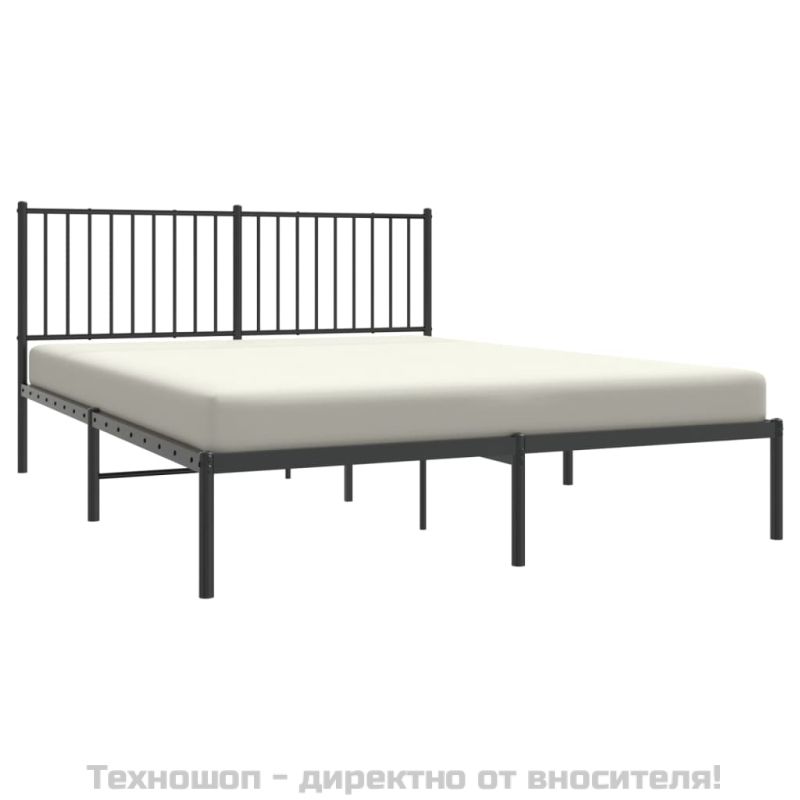 Метална рамка за легло с горна табла, черна, 150x200 см