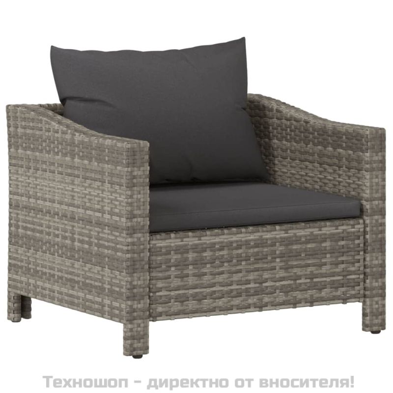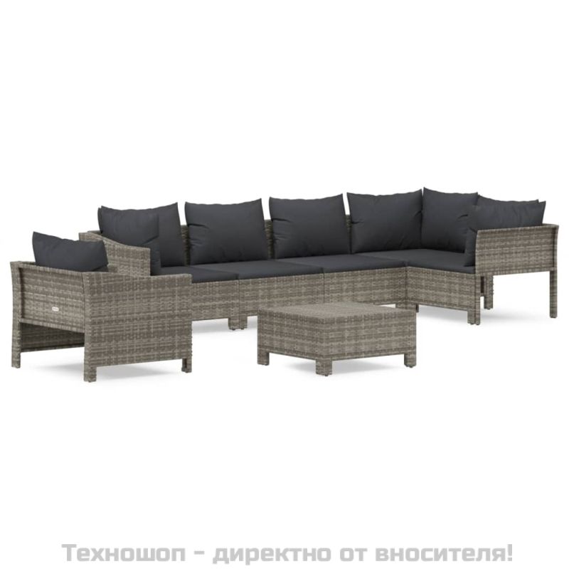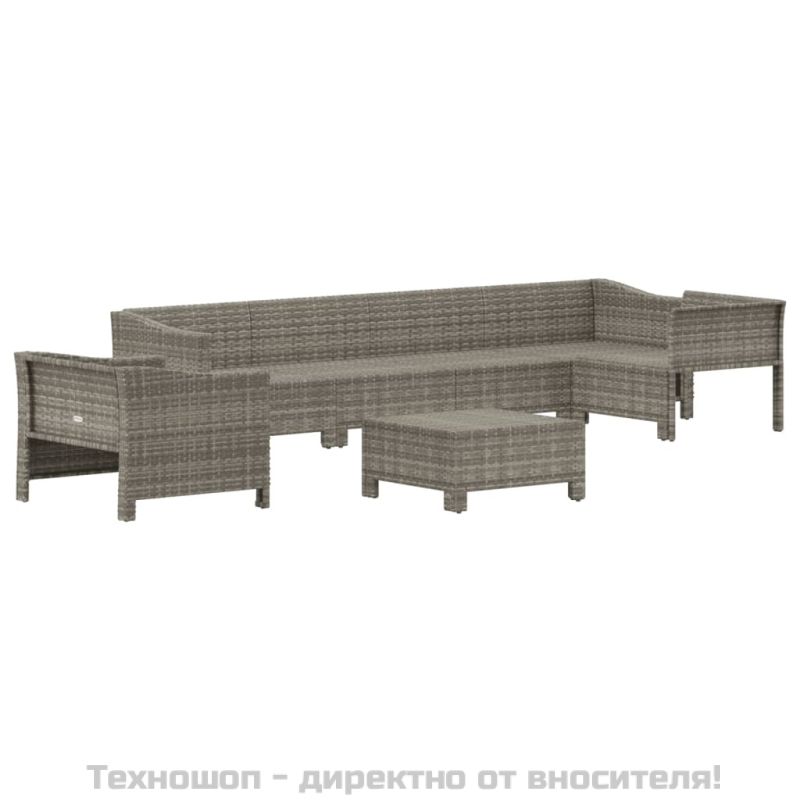 Градински лаундж комплект с възглавници 7 части полиратан сив