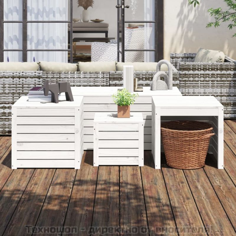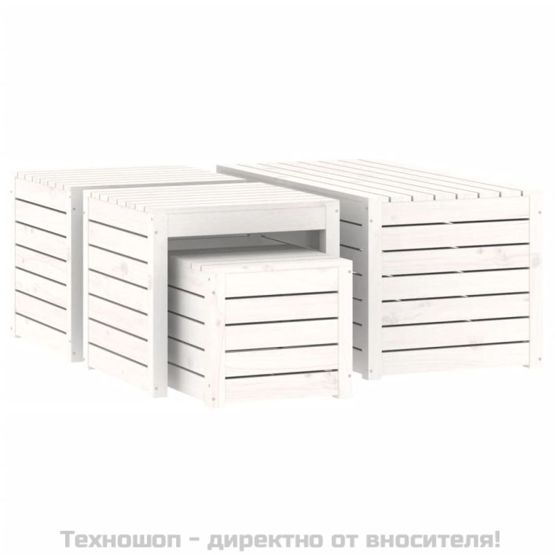 Комплект градински кутии от 4 части, бели, масивно дърво бор