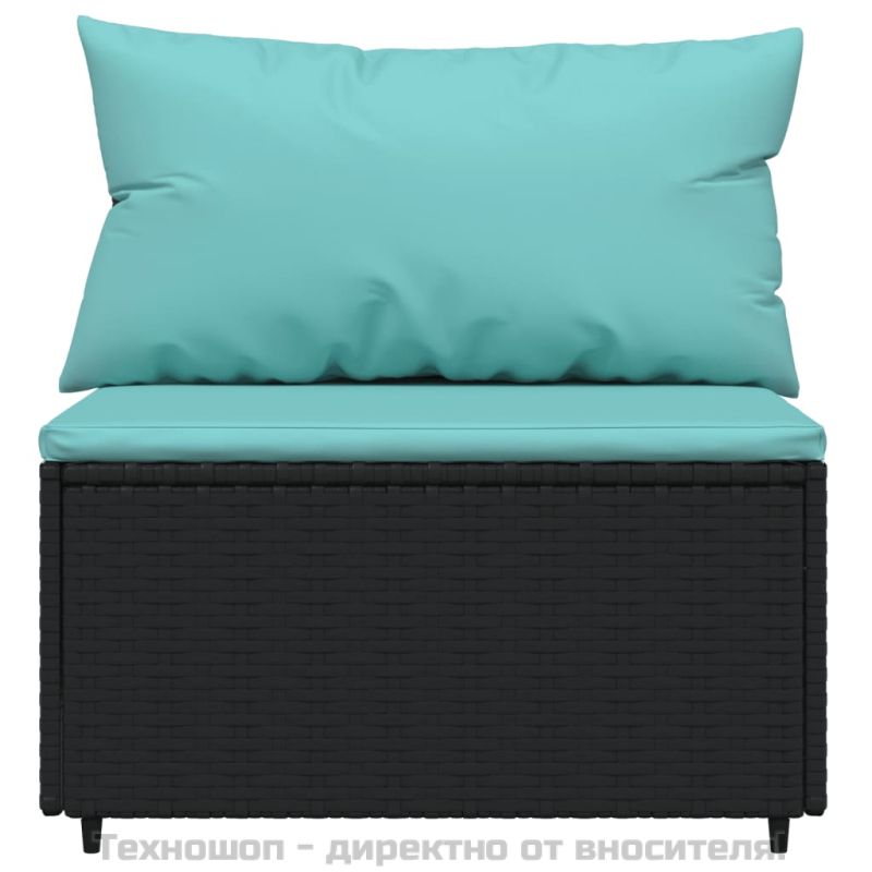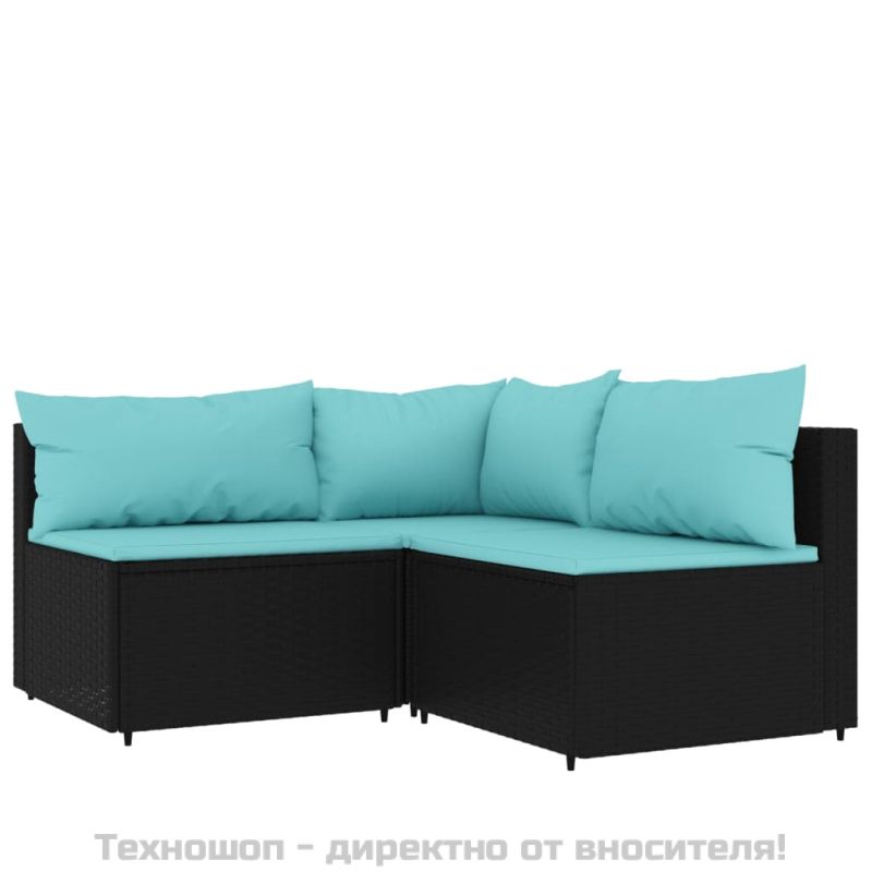 Градински лаундж комплект с възглавници 4 части черен полиратан