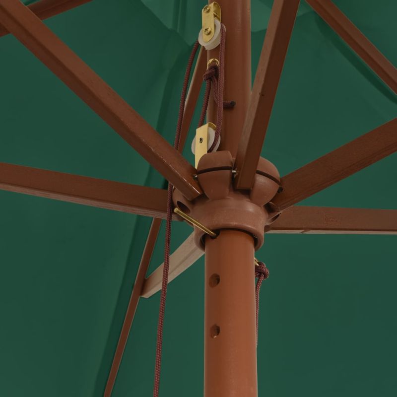 Този градински чадър е идеален за създаване на сянка и защита от вредните UV лъчи на слънцето. Издръжлив материал: Изработен от UV-защитен и неизбледняващ полиестер, чадърът ви осигурява оптимална защита срещу слънцето и е лесен за почистване.Стабилна рамка: Здравият прът от твърда дървесина и издръжливите ребра правят градинския чадър много стабилен и издръжлив.Вентилационен отвор: Допълнителното парче плат в горната част на чадъра позволява вентилация на вятъра и топлината, което прави чадъра прекрасен избор за прекарване на открито.Лесно управление: Външният чадър може лесно да се отваря и затваря благодарение на системата с единична макара. Забележка:Този продукт не е 100% водоустойчив. Препоръчваме да третирате този продукт с водоустойчив спрей за по-добра водоустойчивост. Важно е всеки продукт, който се сглобява с помощта на какъвто и да е вид винт, да се затегне отново 2 седмици след сглобяването и веднъж на всеки 3 месеца, за да се осигури стабилност през целия жизнен цикъл на продукта. Не затягайте напълно всеки винт, докато всички винтове не бъдат правилно фиксирани. По време на монтажа не допускайте деца в зоната на сглобяване. Работете внимателно с тежките части. Уверете се, че този продукт е напълно сглобен, както е показано на илюстрацията, преди да го използвате. Този продукт трябва да се използва само на твърда, равна земя. Уверете се, че продуктът винаги е поставен на равна земя. Не се поема отговорност за щети или наранявания, причинени от неправилна употреба на този продукт. Дръжте ръцете си далеч от механизма за сгъване и движещите се части, за да предотвратите евентуални наранявания. Никога не използвайте и не отваряйте този чадър без подходяща основа. Не използвайте този чадър по време на силен вятър и дъжд. Неспазването на това изискване може да доведе до телесни наранявания и/или повреди. Винаги затваряйте сенника и слагайте покривалото, ако вятърът се усили над „умерен бриз“, ако има снеговалеж или ако вали дъжд. Продуктът съдържа малки части, които могат да представляват риск за малки деца. Съхранявайте малките части на места, недостъпни за деца. Този продукт не е играчка! Уверете се, че децата не използват нито сенника, нито балдахина, нито основата за игра или катерене. Не използвайте открит огън (напр. градинско барбекю или скара) под или в непосредствена близост до този продукт.