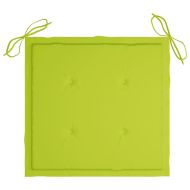 Добавете щрих на рустик чар към вашата трапезария, градина или вътрешен двор с този комплект стифиращи градински столове с възглавници! Този комплект трапезни столове ще извиси вашето вътрешно или външно жилищно пространство със своя елегантен ламелен дизайн. Комплектът мебели от тик е изработен от изключително издръжлива тикова твърда дървесина, която е суха – изсушена в пещ и фино шлифована, за да ѝ се придаде много гладък вид. Тиковото дърво е известно с изключителната си здравина и устойчивост на атмосферни влияния, което го прави далеч по-подходящо за градински мебели от всеки друг вид дърво. Тиковата дървесина е идеалният избор, ако искате да закупите дълготрайна градинска мебел. Лесно се поддържа и почиства с влажна кърпа. Освен това трапезните столове се подреждат един върху друг, за да се пести място за съхранение, когато не се използват. Нещо повече, включените възглавници осигуряват допълнителен комфорт. Всяка възглавница има 2 комплекта връзки, за да я фиксирате плътно към стола. Забележка: За да удължите живота на вашите градински мебели, препоръчваме ви да ги почиствате редовно и да не ги оставяте ненужно на открито без защита.Почистване: Използвайте мек сапунен разтворСъхранение: Ако е възможно, съхранявайте на хладно и сухо място на закрито. Ако продуктът се съхранява на открито, защитете го с водоустойчиво покривало. Избършете и изсушете излишната вода или сняг от плоските повърхности след дъжд или снеговалеж. Позволете достатъчно циркулация на въздуха, за да избегнете повреди, свързани с влагата.