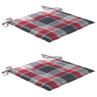 Градински столове с възглавници червено каре 2 бр тик масив
