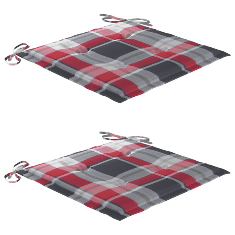 Градински столове с възглавници червено каре 2 бр тик масив