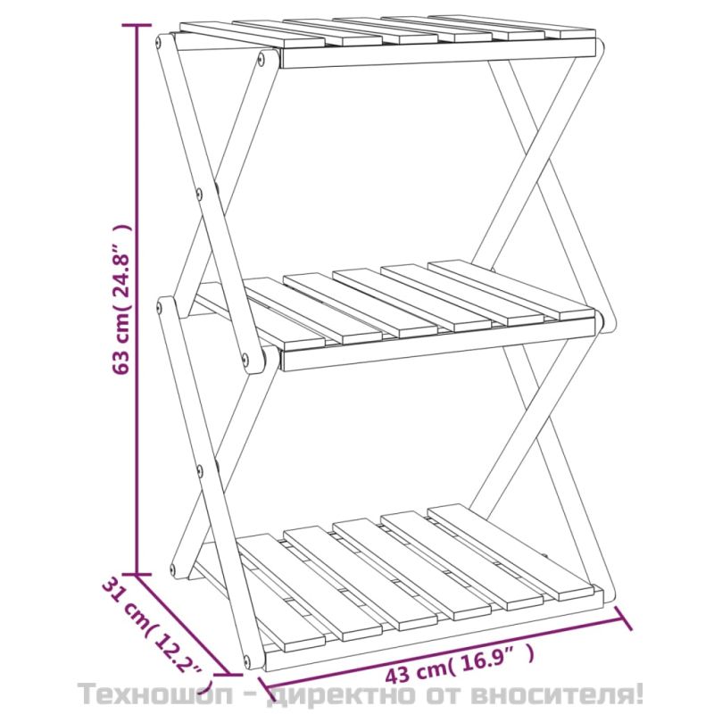 3-етажна сгъваема етажерка кафява 43x31x63 см масивна акация