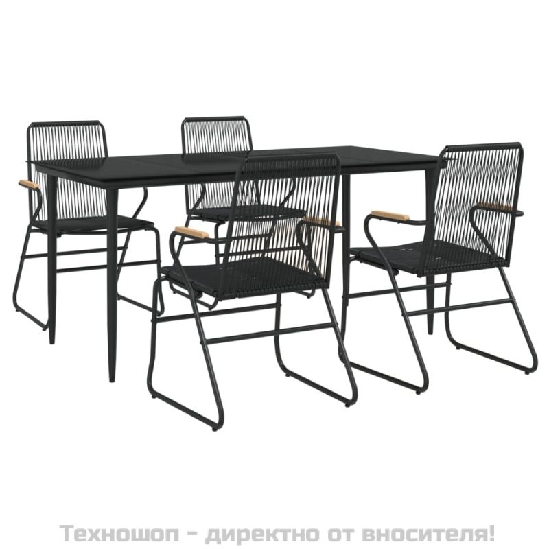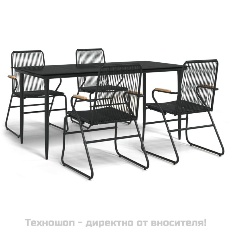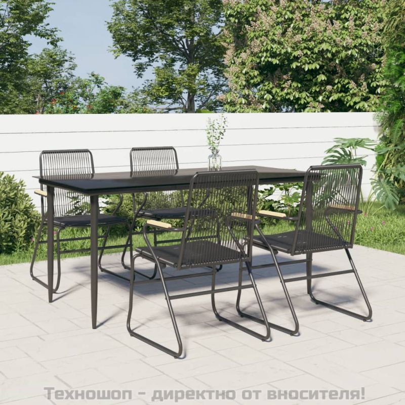 Градински трапезен комплект от 5 части, черeн, PVC ратан