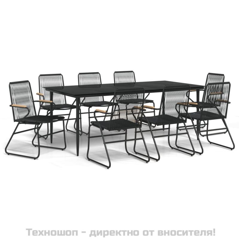 Градински трапезен комплект от 9 части, черно, PVC ратан