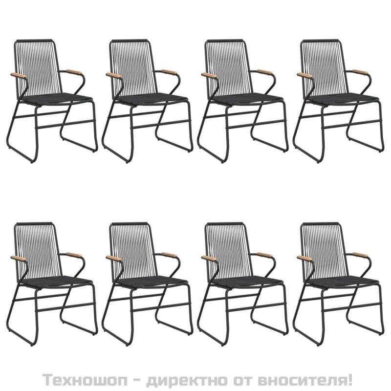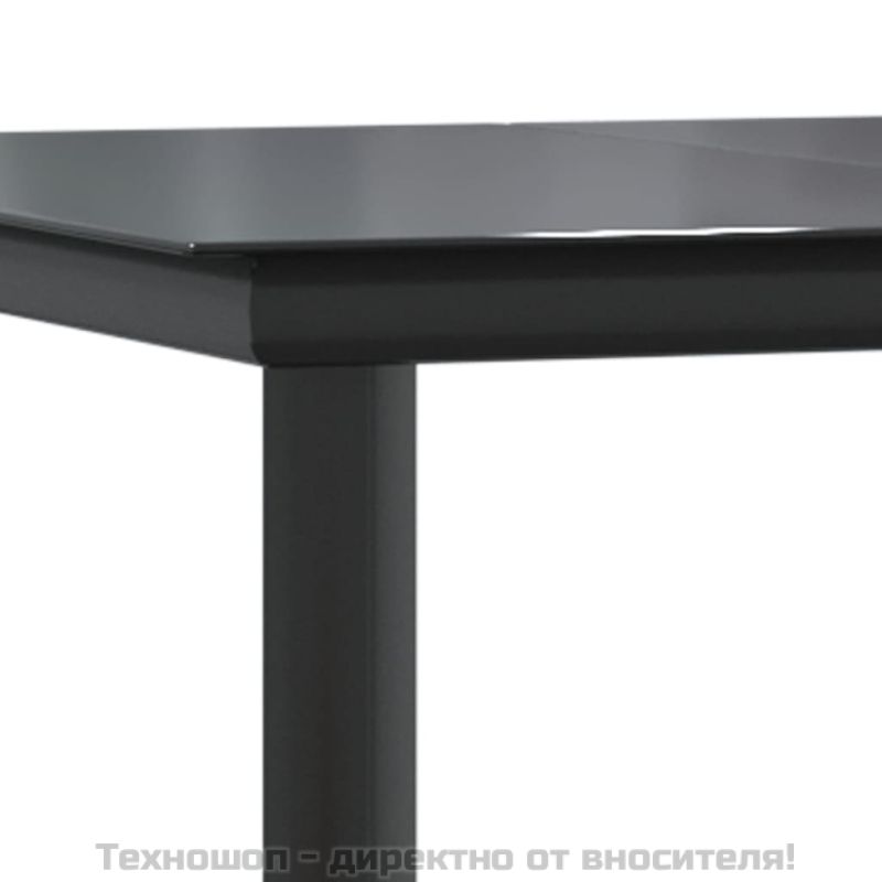 Градински трапезен комплект от 9 части, черно, PVC ратан