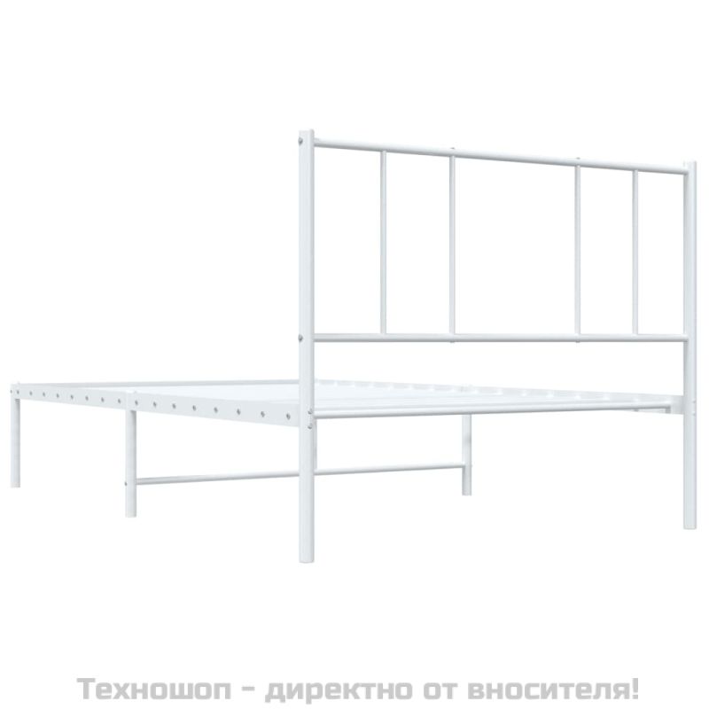 Метална рамка за легло с горна табла, бяла, 107x203 см