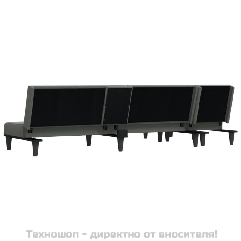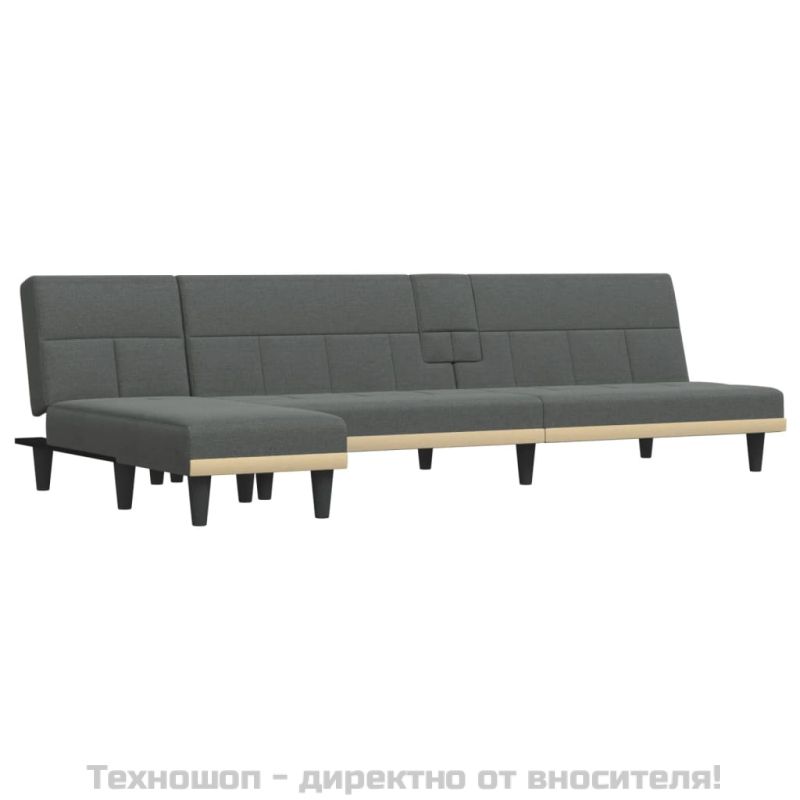 Г-образно разтегателно канапе тъмносиво 255x140x70 см плат