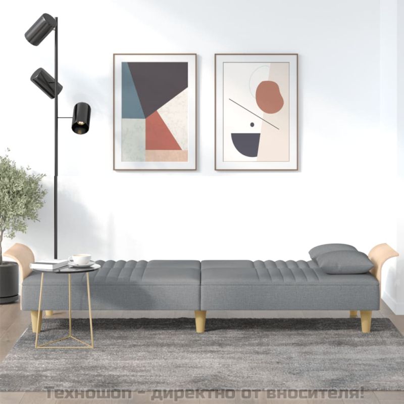 Разтегателно канапе с подлакътници, светлосиво, плат