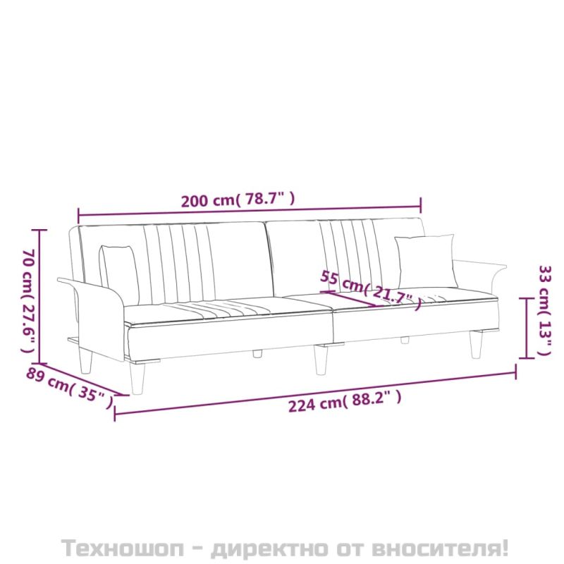 Това разтегателно канапе е перфектно за гости с преспиване, като същевременно осигурява удобно място за сядане през деня. Издържлив материал: Тъканта се отличава със семпъл и изчистен вид и е дишаща и издръжлива. Регулируема облегалка: Можете да натиснете двете отделни облегалки на канапето частично или напълно надолу, за да създадете идеално място за дрямка или двойно легло. Удобна седалка: Разтегателният диван е много удобен с дебело подплатени седалки, подлакътници и облегалки.Практични възглавници: Тези възглавници не само украсяват декора ви, но могат да добавят допълнителен комфорт, когато седите или лежите. Здрава и стабилна рамка: Рамката от шперплат на дивана осигурява здравина и стабилност.