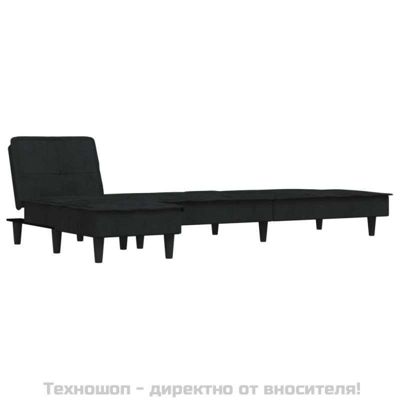 Г-образно разтегателно канапе черно 255x140x70 см кадифе