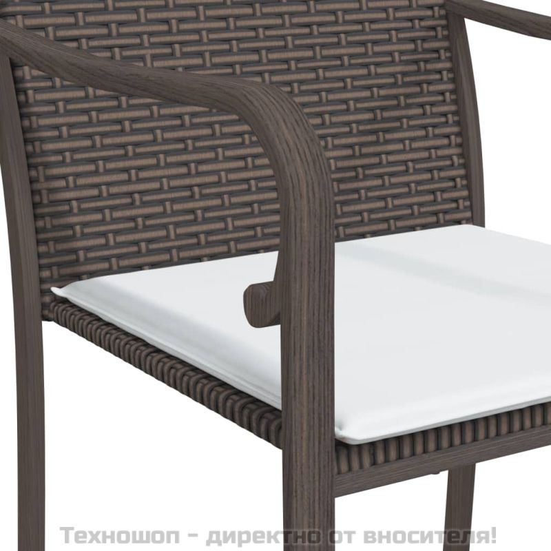Този градински трапезен комплект, съчетаваща както стил, така и функционалност, без съмнение е предназначен да бъде акцентът на вашата градина, вътрешен двор или всяко друго жилищно пространство. Материал, устойчив на атмосферни влияния: PE ратан, известен също като полиратан, е устойчив на атмосферни влияния и лесен за почистване. Той остава красив отвън за дълъг период от време. Предлага отлично качество, удобство и естетичен вид.Здрава и стабилна рамка: Стоманените рамки правят трапезния комплект здрав и стабилен за ежедневна употреба на открито.Практичен плот: Гладкият плот на трапезната маса е изработен от закалено стъкло, което се почиства лесно с влажна кърпа. Освен това предлага отлична опора за съхранение на вашите ястия, напитки и други декоративни елементи.Удобни места за сядане: Столът за хранене е проектиран с облегалка, за да ви предложи удобно изживяване при сядане. Дебело подплатената възглавница на седалката осигурява максимален комфорт по време на седене. Забележка:За да сте сигурни, че вашите външни мебели ще останат красиви, ви препоръчваме да ги защитите с водоустойчиво покривало.
