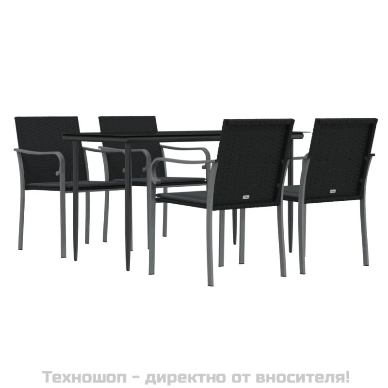 Градински комплект от 5 части с възглавници полиратан и стомана