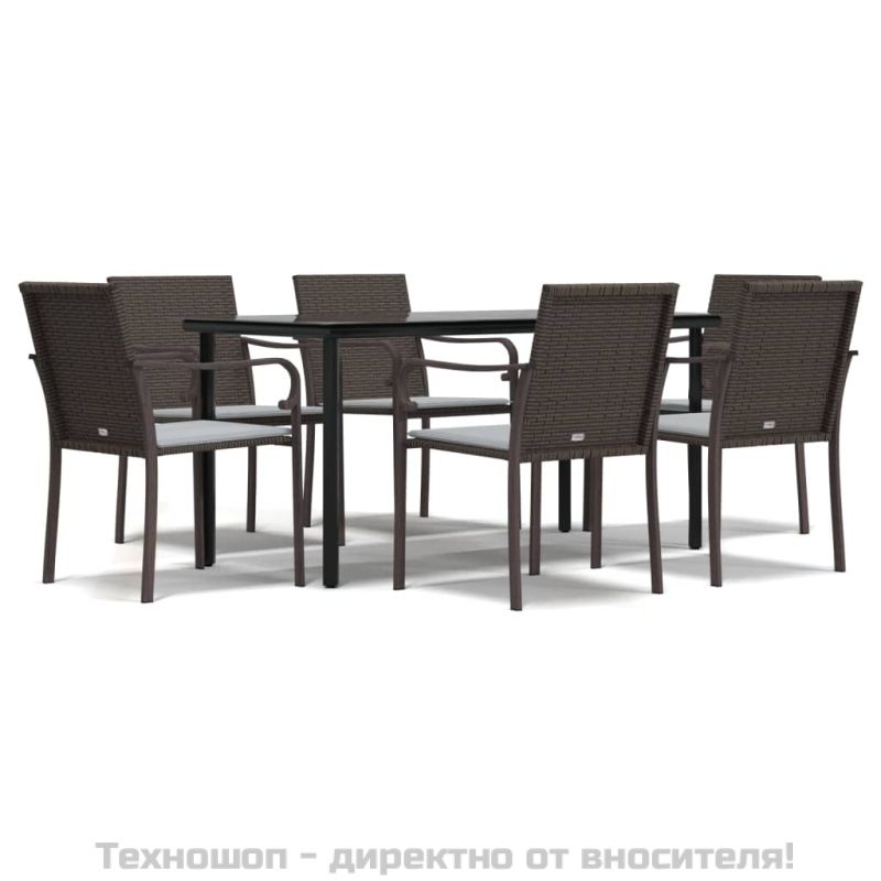 Градински комплект от 7 части с възглавници полиратан и стомана