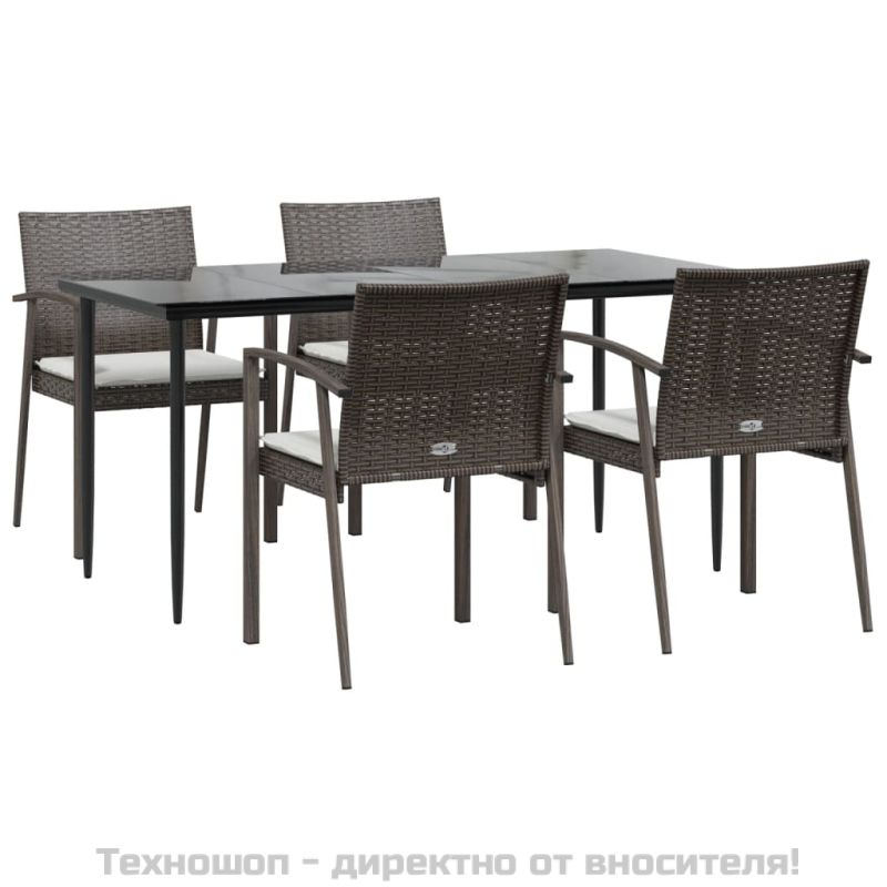 Градински комплект от 5 части с възглавници полиратан и стомана