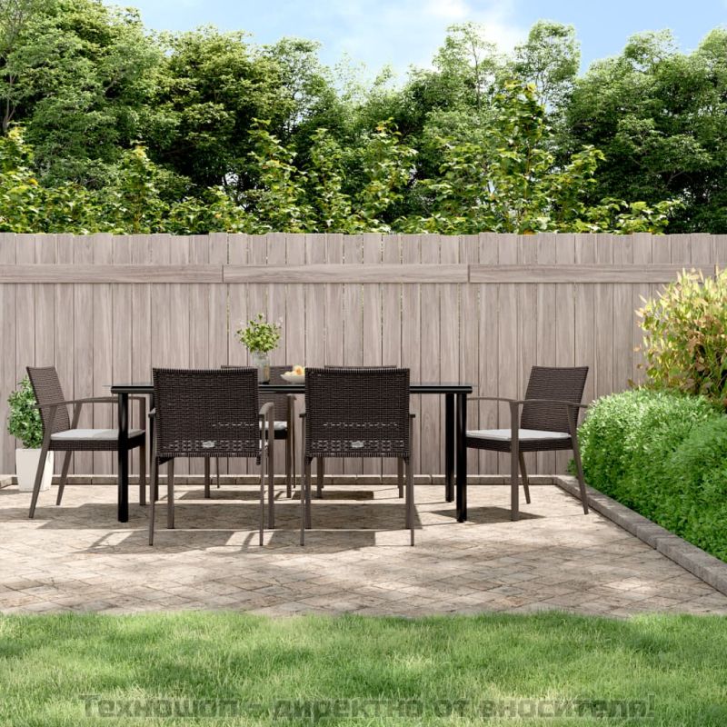 Градински комплект от 7 части с възглавници полиратан и стомана