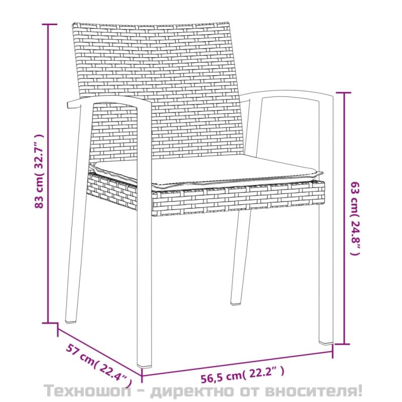 Този градински трапезен комплект, съчетаваща както стил, така и функционалност, без съмнение е предназначен да бъде акцентът на вашата градина, вътрешен двор или всяко друго жилищно пространство. Материал, устойчив на атмосферни влияния: PE ратан, известен също като полиратан, е устойчив на атмосферни влияния и лесен за почистване. Той остава красив отвън за дълъг период от време. Предлага отлично качество, удобство и естетичен вид.Здрава и стабилна рамка: Стоманените рамки правят трапезния комплект здрав и стабилен за ежедневна употреба на открито.Практичен плот: Гладкият плот на трапезната маса е изработен от закалено стъкло, което се почиства лесно с влажна кърпа. Освен това предлага отлична опора за съхранение на вашите ястия, напитки и други декоративни елементи.Удобни места за сядане: Столът за хранене е проектиран с облегалка, за да ви предложи удобно изживяване при сядане. Дебело подплатената възглавница на седалката осигурява максимален комфорт по време на седене. Забележка:За да сте сигурни, че вашите външни мебели ще останат красиви, ви препоръчваме да ги защитите с водоустойчиво покривало.