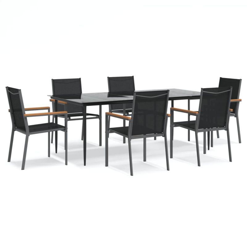 Градински трапезен комплект 7 части черен текстилен и стомана