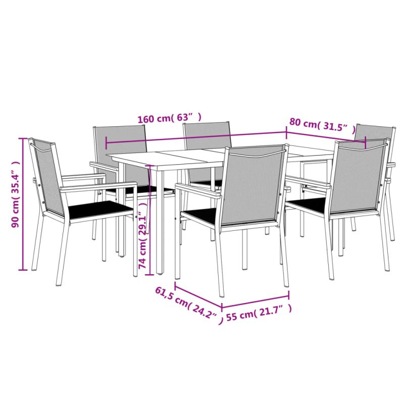 Градински трапезен комплект 7 части черен текстилен и стомана