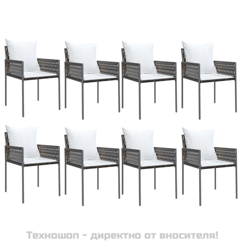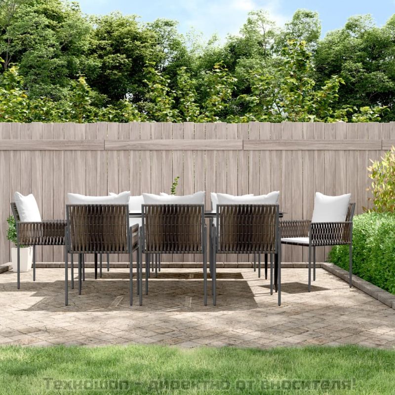 Градински комплект с възглавници от 9 части полиратан и стомана