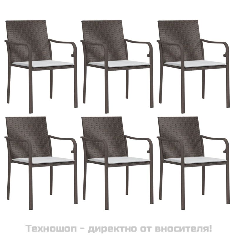 Градински комплект от 7 части с възглавници полиратан и стомана