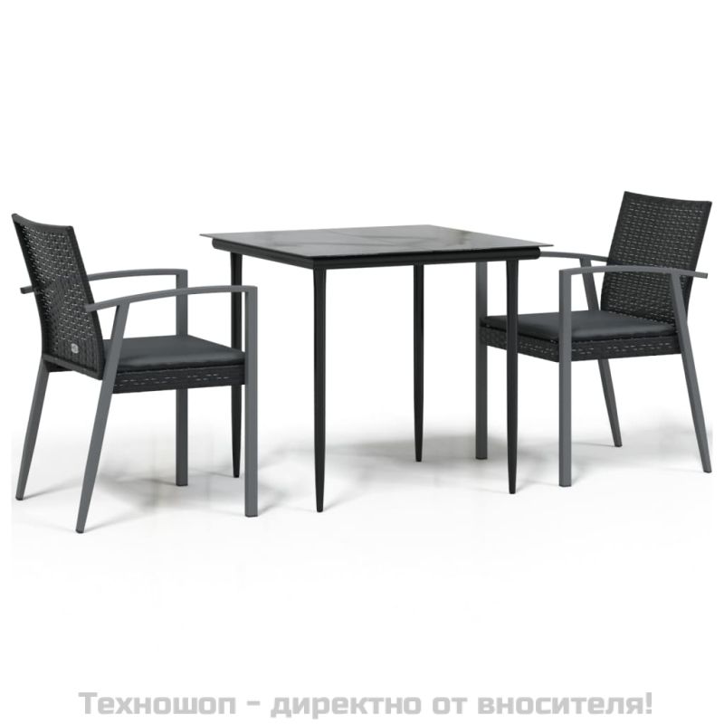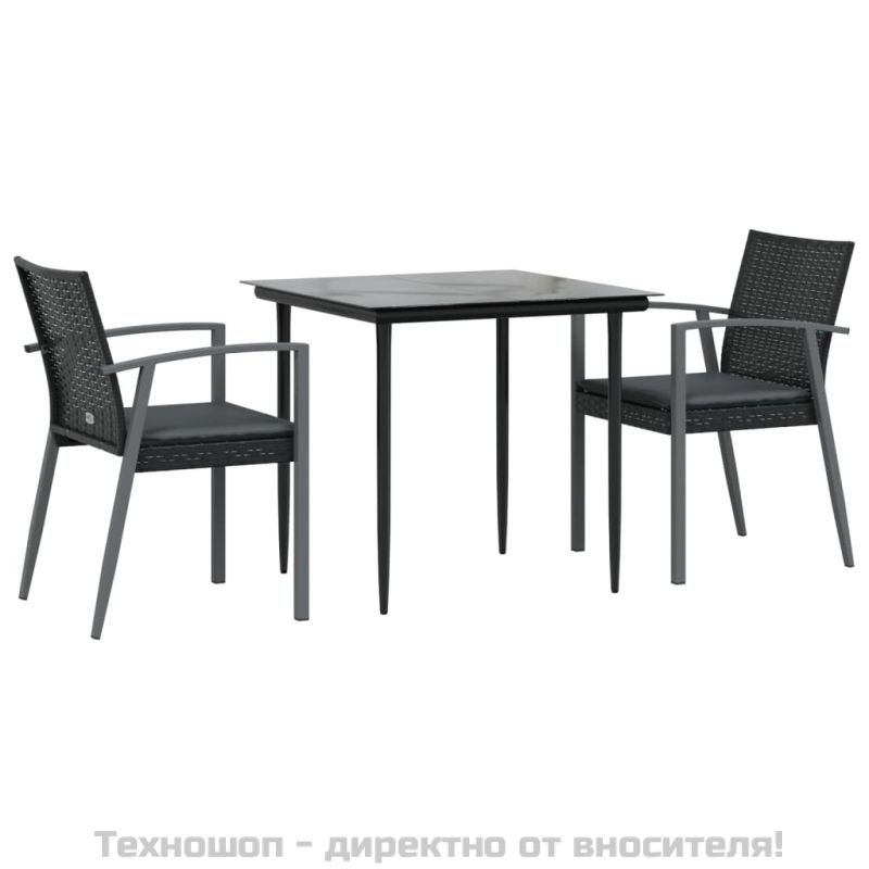 Градински комплект от 3 части с възглавници полиратан и стомана