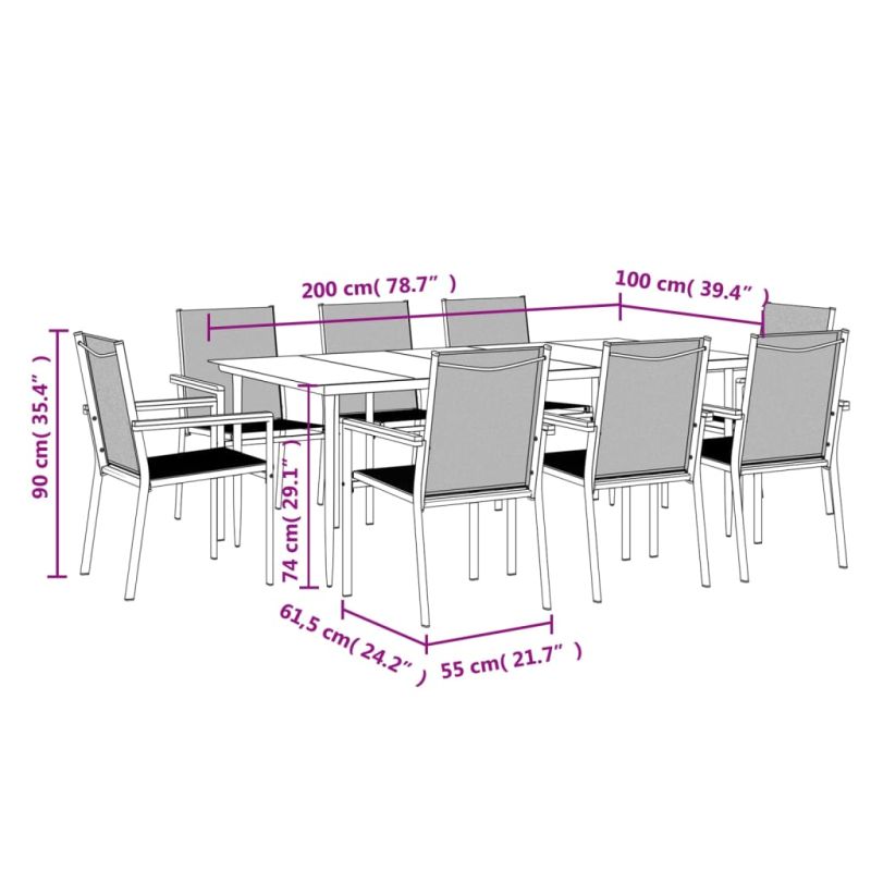 Градински трапезен комплект 9 части черен текстилен и стомана