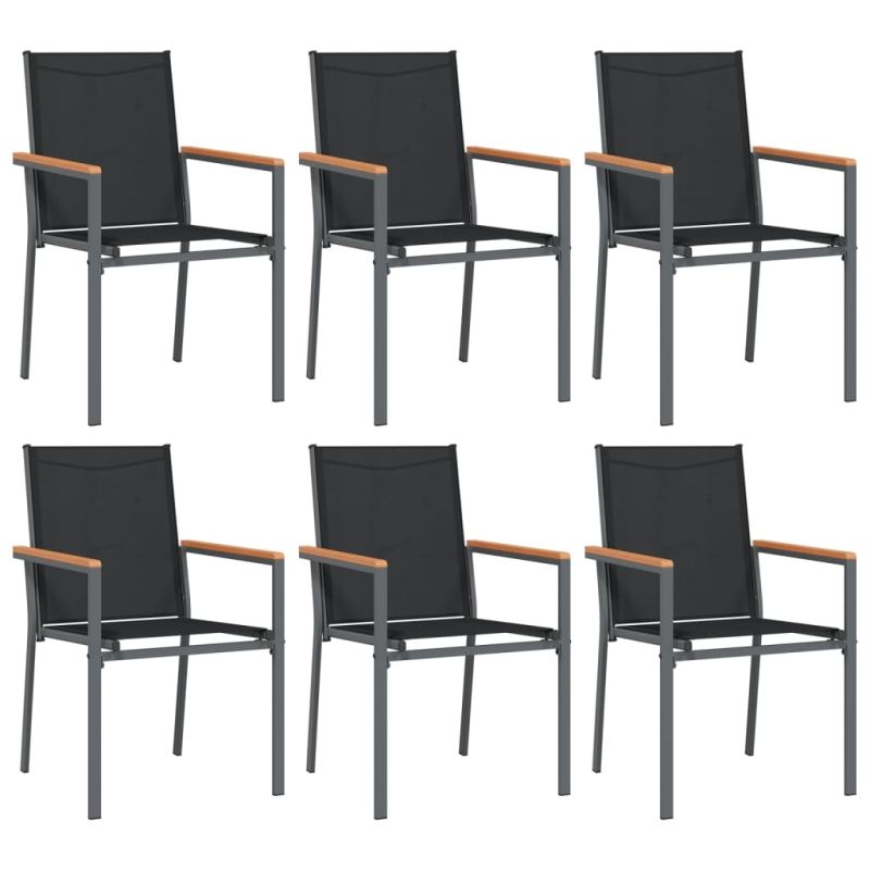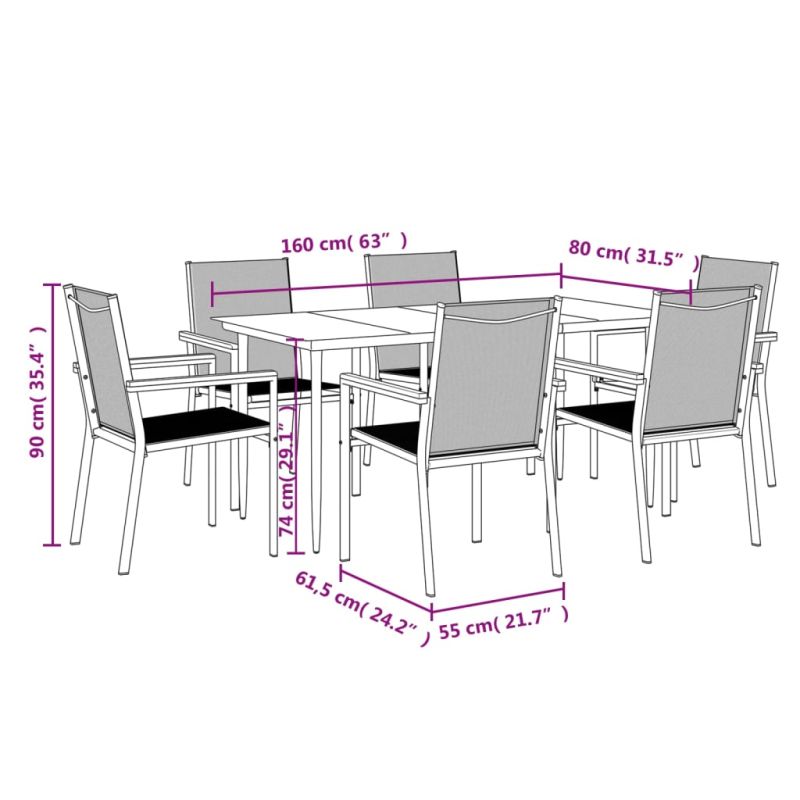 Градински трапезен комплект 7 части черен текстилен и стомана