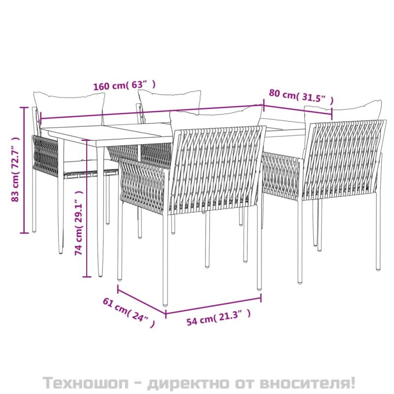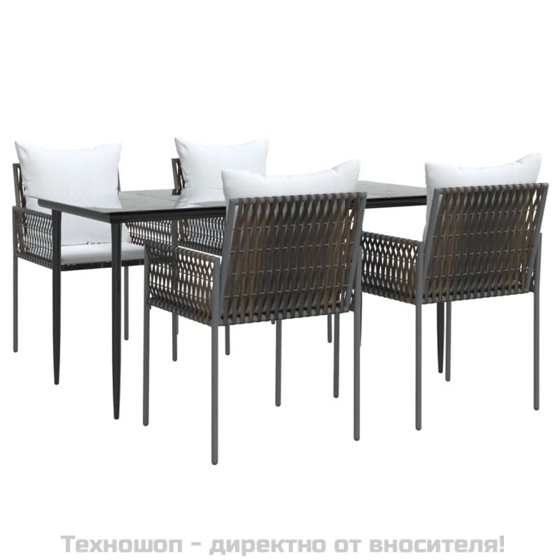 Градински комплект от 5 части с възглавници полиратан и стомана