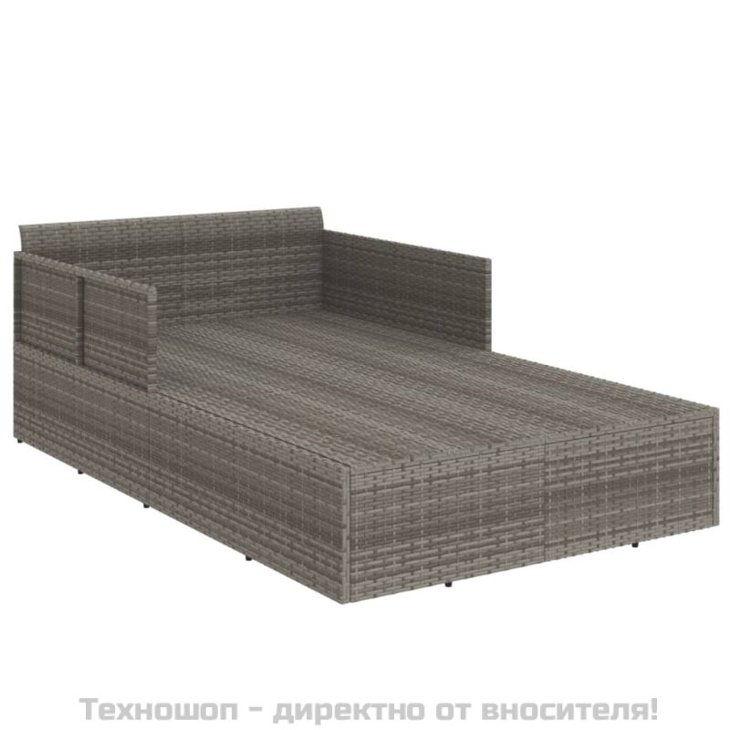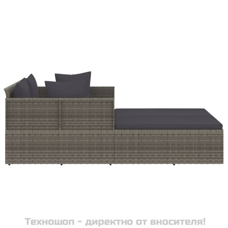 Шезлонг с възглавници, сив, 182x118x63 см, полиратан
