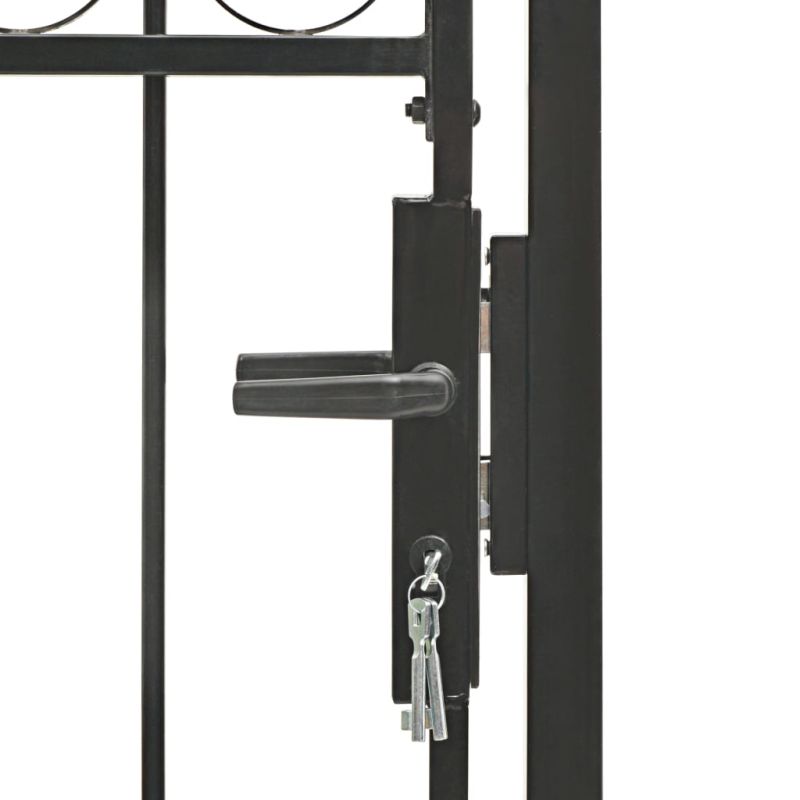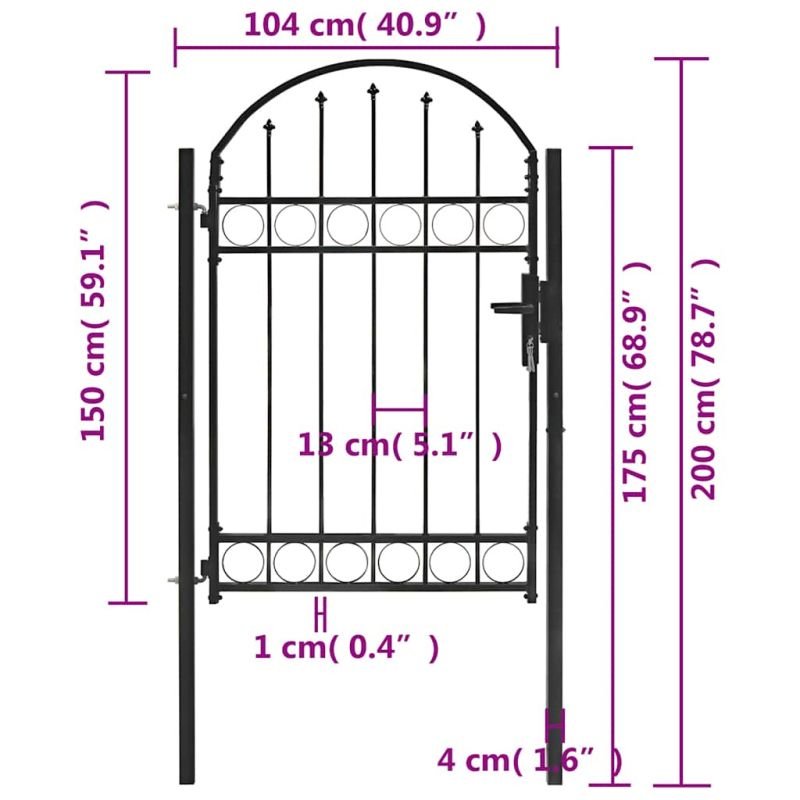 Оградна порта с арковиден връх, стомана, 104x150 см, черна