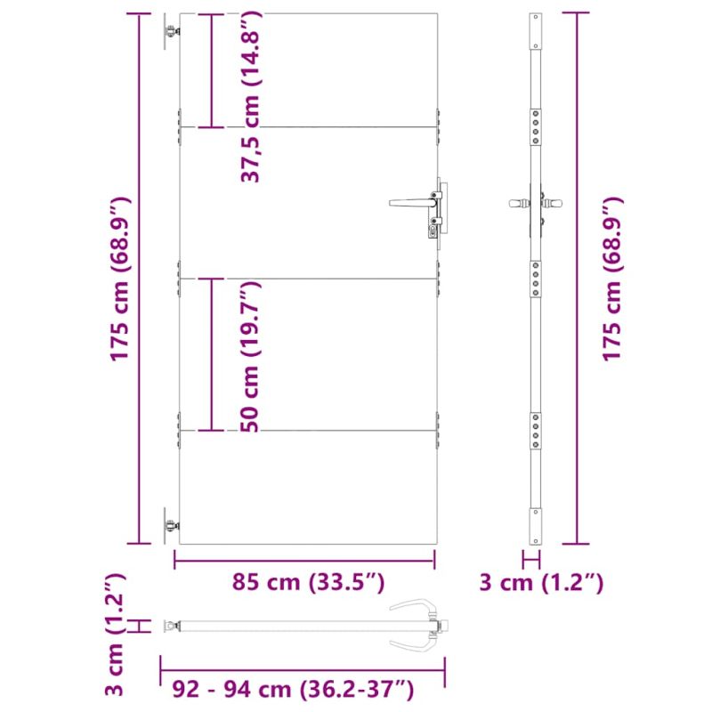 Тази градинска порта, отличаваща се с перфектна комбинация от здравина и елегантност, е идеална врата за оградата около вашата градина или вътрешен двор. Издръжлив материал: Металната врата е изработена от кортенова стомана. Кортенова стомана, известна също като патинираща стомана. Тя е антикорозионна по своята същност. Развива ръждив защитен слой срещу корозия при първото излагане на атмосферни условия. Следователно не е необходимо да я боядисвате. Това може да ви помогне да спестите разходи за поддръжка и ремонт. Отличителният кафяв цвят на кортеновата стомана със сигурност ще привлече вниманието. И накрая, патиниращата стомана е изключително издръжлива и ще издържи изпитанието на времето. Дизайн за пълна поверителност: Плътната странична врата позволява по-добра защита на вашата поверителност, като същевременно изглежда стилно.Заключваща се система: Стоманената порта е оборудвана със заключваща се система за допълнителна сигурност. Добре е да се знае:Този продукт трябва да бъде сглобен.Този продукт все още не е ръждясал и когато го получите ще има нормален метален цвят, но ръждата ще се появи с течение на времето. Можете да ускорите процеса на ръждясване, като го напръскате със сапунена и солена вода. За да запазите дрехите си от петна, избягвайте контакт с образуващия се слой ръжда. Не използвайте този артикул, ако някой от компонентите е счупен, скъсан или липсва.