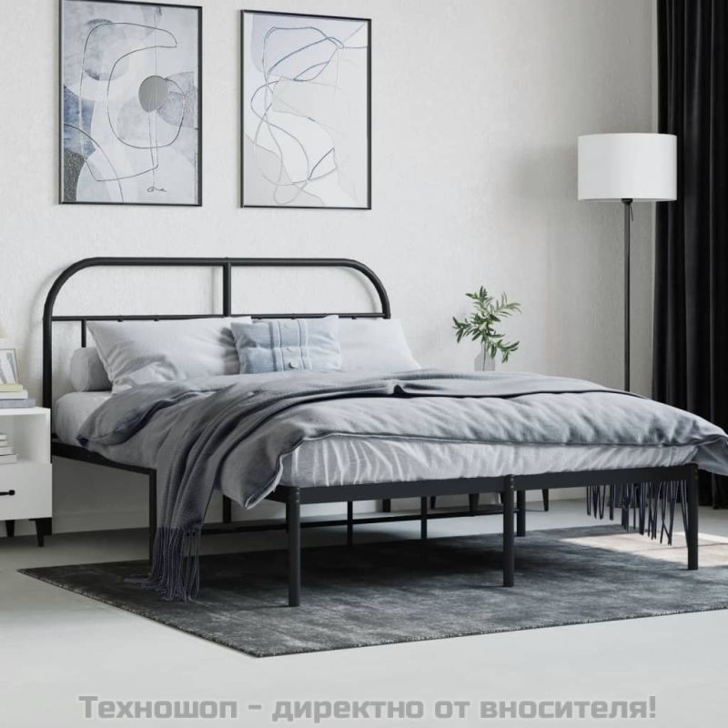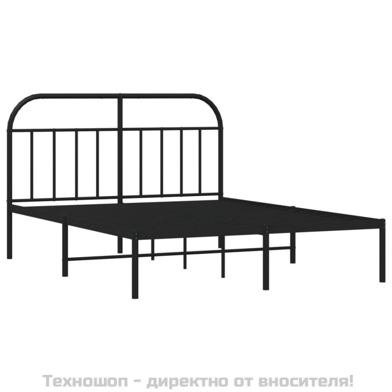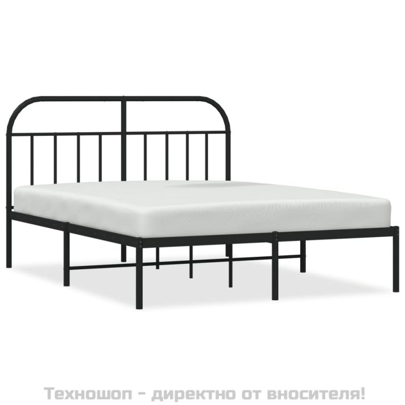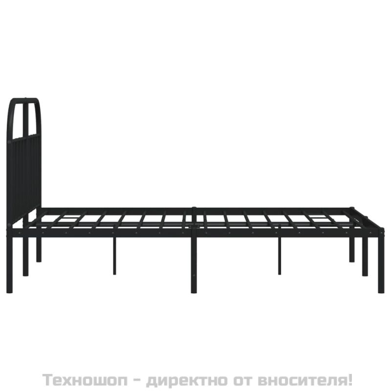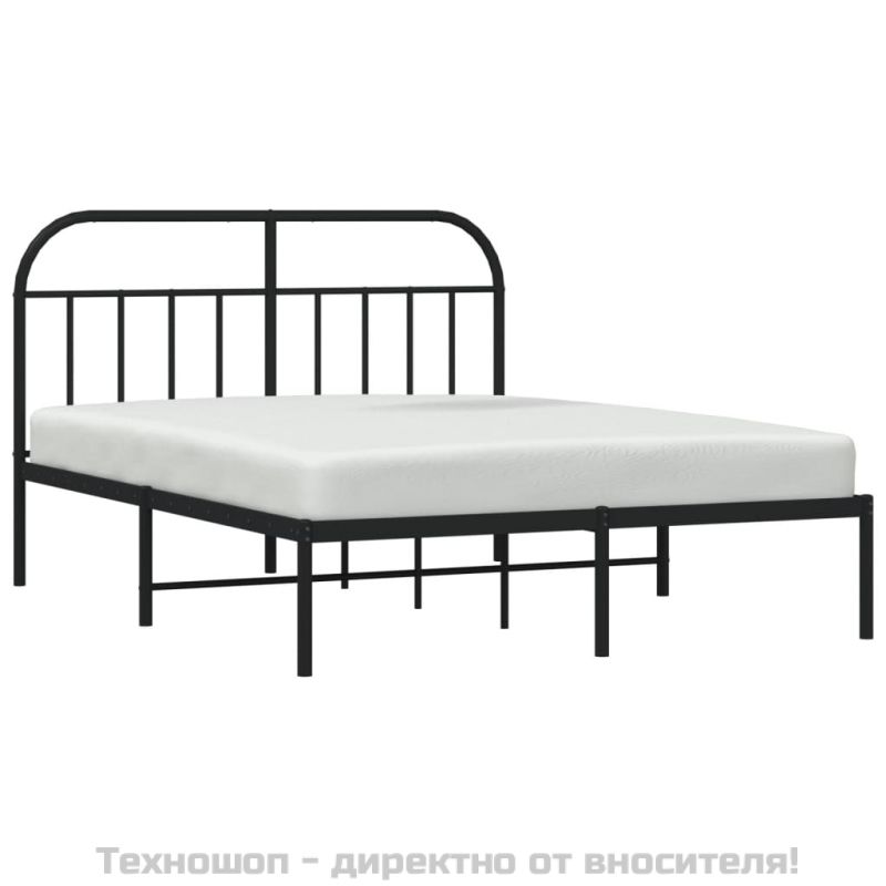 Метална рамка за легло с горна табла, черна, 135x190 см
