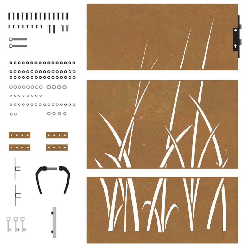 Градинска порта 85x125 см, дизайн с кортенова стомана и трева